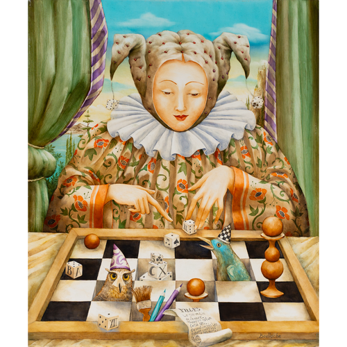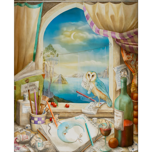 Elle travaille l’huile sur bois avec la technique des glacis, superposant de fines couches transparentes pour révéler des jeux subtils de lumière et de profondeur. Alchimiste dans l’âme, elle fabrique elle-même ses pigments, médiums et vernis.