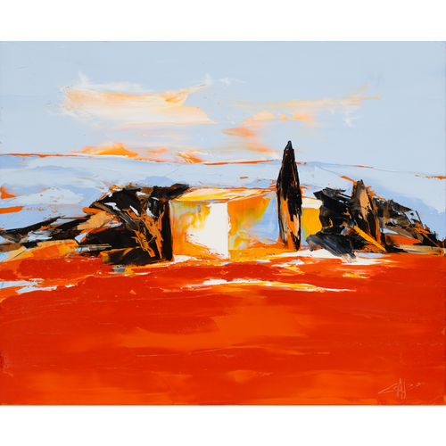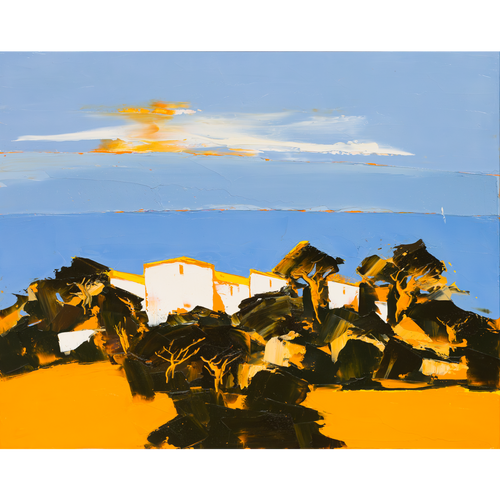Au début des années 1970, il choisit de se consacrer pleinement à la peinture. Ses sujets de prédilection sont les paysages provençaux, les rivages irlandais, les natures mortes florales. Son style, fait de couleurs franches et de textures marquées, cherche moins à représenter la réalité qu’à en transmettre une impression sensible. À travers chaque œuvre, il capte l’essence d’un lieu ou d’un moment avec poésie. Il compose des scènes baignées de lumière, où des silhouettes architecturales s’élèvent au cœur de plages colorées et silencieuses, évoquant les odeurs de pins, le chant des cigales ou la brise marine.