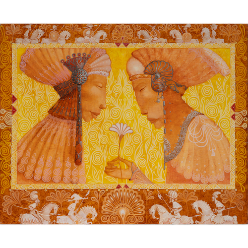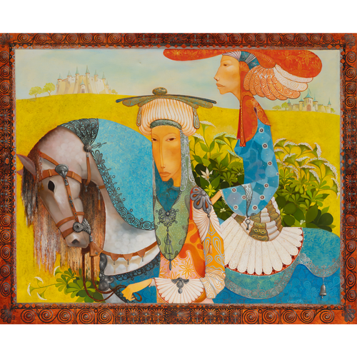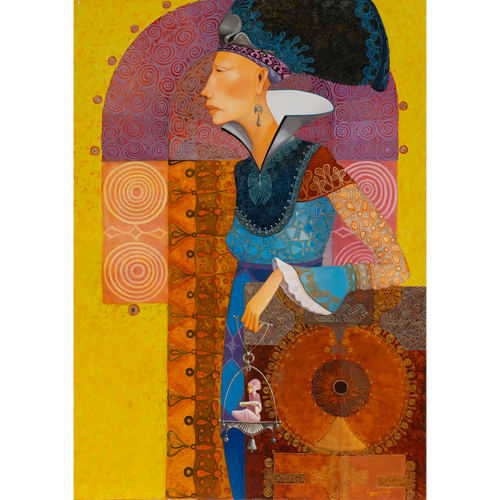 Merab Gagiladze puise son inspiration dans les contes, les mythes et la religion de son pays, à la croisée des traditions orientales et européennes. Ses tableaux figuratifs, teintés de surréalisme, mettent en scène des personnages imaginaires à la frontière du rêve et de la réalité. Ses figures sont idéalisées, parfois androgynes et incarnent des archétypes intemporels.